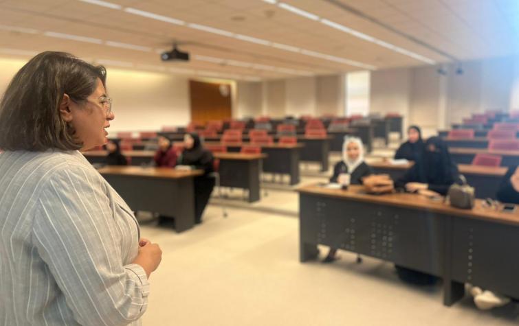 | في إطار إثراء الثقافة الأدبية، قدّم قسم اللغة العربية وآدابها ورشة “كتابة القصة القصيرة”، ألقتها د. أنوار السعد، بحضور القائم بأعمال رئيس قسم اللغة العربية وآدابها د. علي الصراف، ومقررة اللجنة الثقافية د. هيفاء السنعوسي، وذلك في بهو كلية الآداب يوم الاثنين 3 نوڤمبر 2025. في هذا الصدد، عرضت د. السعد محاور الكتابة القصصية بشكل مفصل، مشيرة إلى أهمية القراءة واختيار الموضوع بالإضافة إلى عناصر القصة والفكرة الأولية والسطور الأولى في تصور الشخصيات، ومؤكدة أن هذه الخطوات تمهد السرد القصصي بشكل أساسي، وبيّنت ذلك في تطبيق عملي. وتأتي هذه الورشة ضمن فعاليات الموسم الثقافي لقسم اللغة العربية وآدابها، تعزيزًا لمهارات الطلبة في المجال الأدبي. وبدورهما، شكر د. الصراف ود. السنعوسي القائمين على هذه الورشة، التي تسهم في رفع مستوى الثقافة الأدبية لدى الطلبة. |