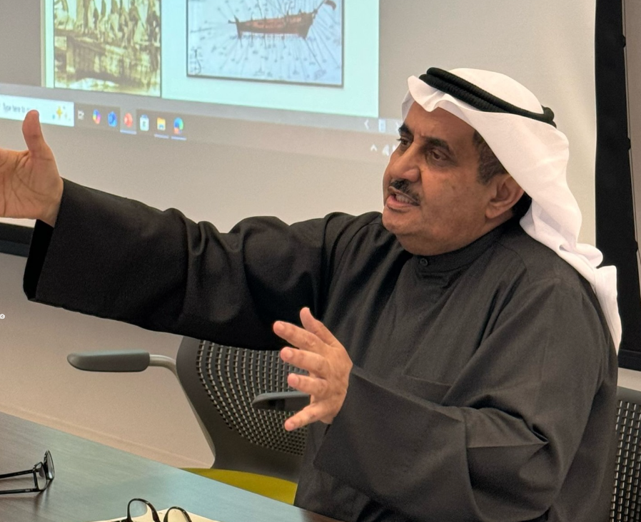 Under the patronage of the Acting Dean of the College of Arts, Prof. Abdul Mohsen Al-Tabtabaei, the Cultural Committee of the Department of History and Archaeology at the College of Arts organized a lecture titled “Saif Marzouq Al-Shamlan and the Book of Pearl Diving in Kuwait and the Arabian Gulf”, presented by Dr. Hamad Al-Qahtani.